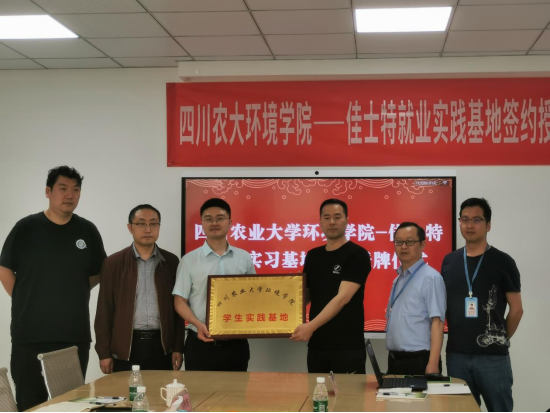 为丰富学生专业实践平台,拓宽学生实习和就业的渠道,4月20日,环境学院党委书记黄成毅、环境生态工程系主任杨占彪、党委办公室副主任黄杵睿一行,前往四川佳士特环境检测有限公司签订tyc5997太阳集团环境学院学生就业实习实践基地并授牌。佳士特公司副总经理赖仁超,党委书记罗克俊等8位企业中高层主管签约暨授牌仪式。