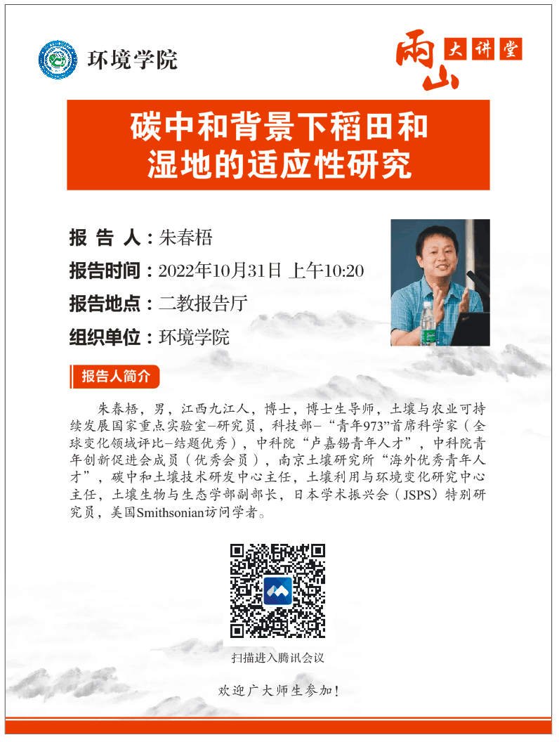 两山大讲堂--碳中和背景下稻田和湿地的适应性研究