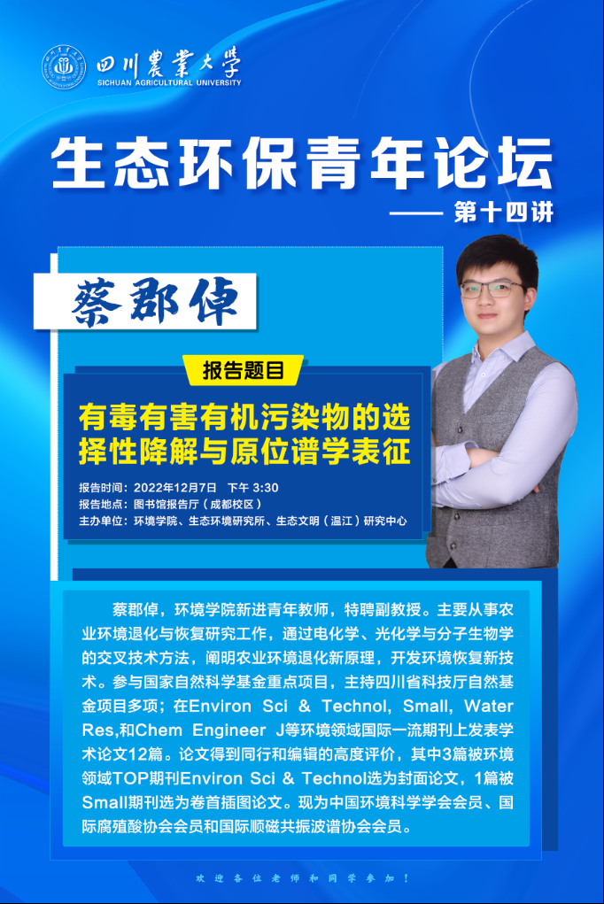 生态环保青年论坛——第十四讲 有毒有害有机污染物的选择性降解与原位谱学表征