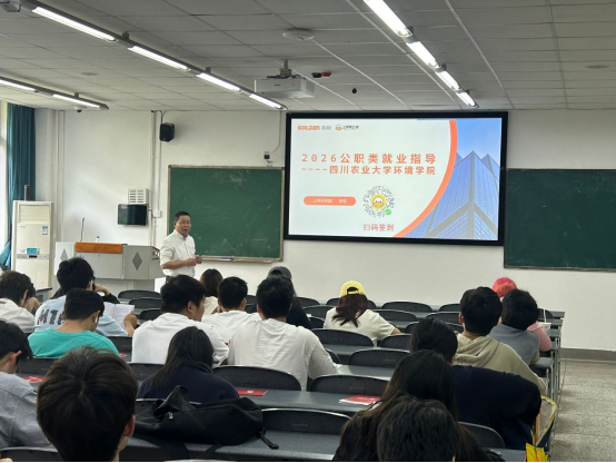 为精准对接环境学院学子的职业发展需求,助力学生深入了解体制内就业路径,4月10日由环境学院学生会主办、学习学术部承办的“学海无涯——体制内任职讲座”在成都校区4教B306成功举行。本次讲座特别邀请到资深考公培训机构“上岸鸭公考”专家熊荣担任主讲嘉宾,面向学院2021 - 2024级本科生,围绕考公规划、岗位选择及备考策略等关键内容展开,吸引了200余名同学参与。