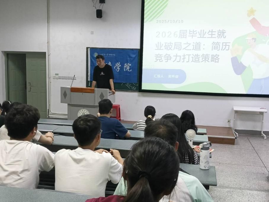活动伊始,黄杵睿老师就当前就业形势进行分析,系统讲解了简历制作的核心原则与实用技巧,为同学们提供了简历优化的具体方案。在随后的“一对一简历指导”环节,毕业生们携带简历,与黄老师进行面对面的交流沟通,黄老师根据每位同学的求职意向,逐项分析其简历中的不足并提出改进建议。本次活动不仅帮助同学们明确了简历中存在的问题,提升了简历质量,更增强了他们面对求职挑战的信心以及对自身未来职业规划的认识。