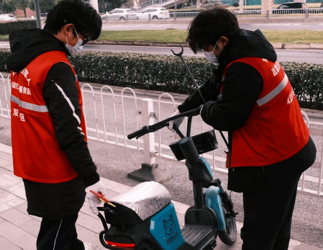 此外,针对社区周边共享单车乱停乱放现象,志愿者们主动将散落在路口、人行道上的共享单车与电动车统一归置至指定停车区域,有效改善了社区秩序,畅通了居民出行通道。