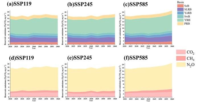 水电作为“双碳”目标下清洁能源的重要载体,其缓解气候变化能力已被证实,然而,水电站水库的温室气体排放问题长期被低估。随着全球气候变暖可能进一步加剧水库温室气体排放。现有研究多聚焦于历史变化趋势量化,忽视了未来气候变化下水电站水库温室气体排放响应。因此,为全面评估气候变化下我国水电站水库的温室气体排放量,环境管理团队潘恒宇课题组首先整合G-res模型与IMAGE-DGNM模型,对中国79座大型水电站水库展开全面系统地温室气体排放核算。其次,基于共享社会经济路径情景,利用随机森林模型预测2020—2060年排放趋势。最后,基于蒙特卡罗分析验证结果的准确性。该研究结果可为水电站水库温室气体减排提供科学支撑。