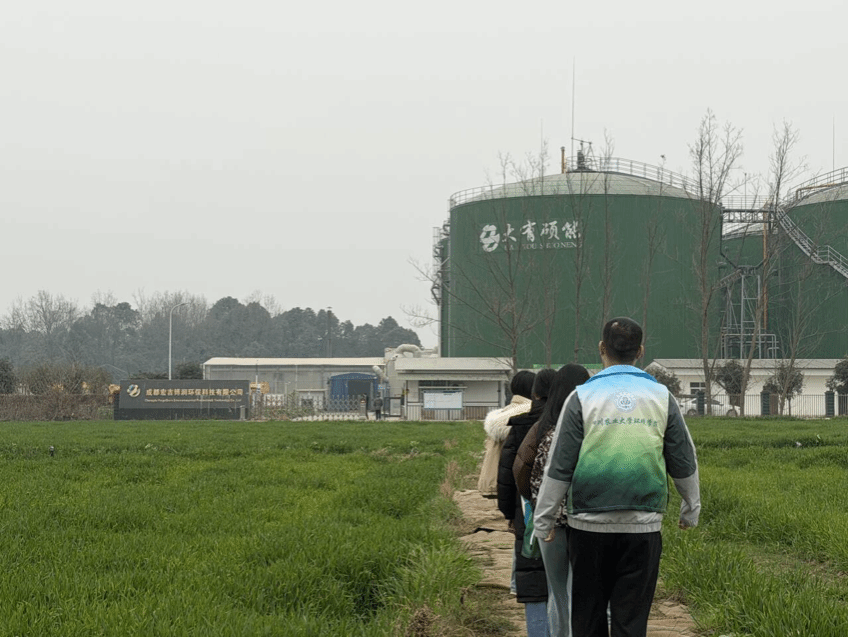 团队成员涵盖环境科学与工程、资源与环境等多个专业,充分发挥“研带本”梯队优势。活动前期,团队已与实践单位完成精准对接,锚定畜禽粪污、秸秆等农业废弃物处理痛点,明确实践方向与目标。实践期间,团队成员走进企业生产一线。成都宏吉博润环保科技有限公司相关负责人为队员们系统讲解德国厌氧发酵工艺的运行原理、核心参数与全流程处理机制。队员们结合专业知识,实地勘测废弃物收集、发酵转化、沼液沼渣还田等关键环节,详细记录工艺运行数据。