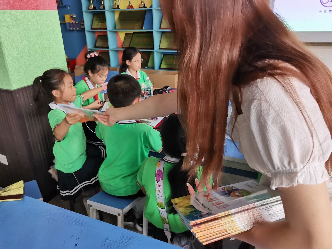 连日的酷暑并没有消磨小朋友们听课的热情,下午正式行课之前,他们早早地来到教室,在本校严老师的指导下按序坐到自己的位置上,翘首以盼地等待着穿着红马甲的哥哥姐姐们上课。第一堂课是由团队成员段新宇教授小朋友们《普通话教程》。她站在专业的角度向小朋友们系统全面地讲解普通话的注意点,并分享了她在演讲与做播音主持时的糗事与成长。接着,她带领着小朋友们进行普通话游戏互动,在有趣好玩的游戏中小朋友们逐渐熟练掌握如何正确说普通话并辨析易错汉字与发音。短暂休息过后开始了第二堂课,这是一堂自然科学课,队员仲雨晴和小朋友一起观看了《美丽中国》的视频,仲雨晴循循善诱地引导小朋友们意识到只有采取实际行动才能守护好美丽家园。休息十分钟后,队员李甜甜通过有趣的视频和图片展示给小朋友们带来一节特殊的生态保护课,她从植物生长过程的角度出发,用一帧帧图片完整地展现了一颗普普通通长有绒毛的幼苗逐渐生长成一株绿意盎然的成熟植株的过程,帮助小朋友们近距离地了解生态植物生长过程,引导孩子们尊重自然规律和大自然中的一切生命,课堂上,小朋友们积极思考、踊跃回答问题,课堂效果显著。