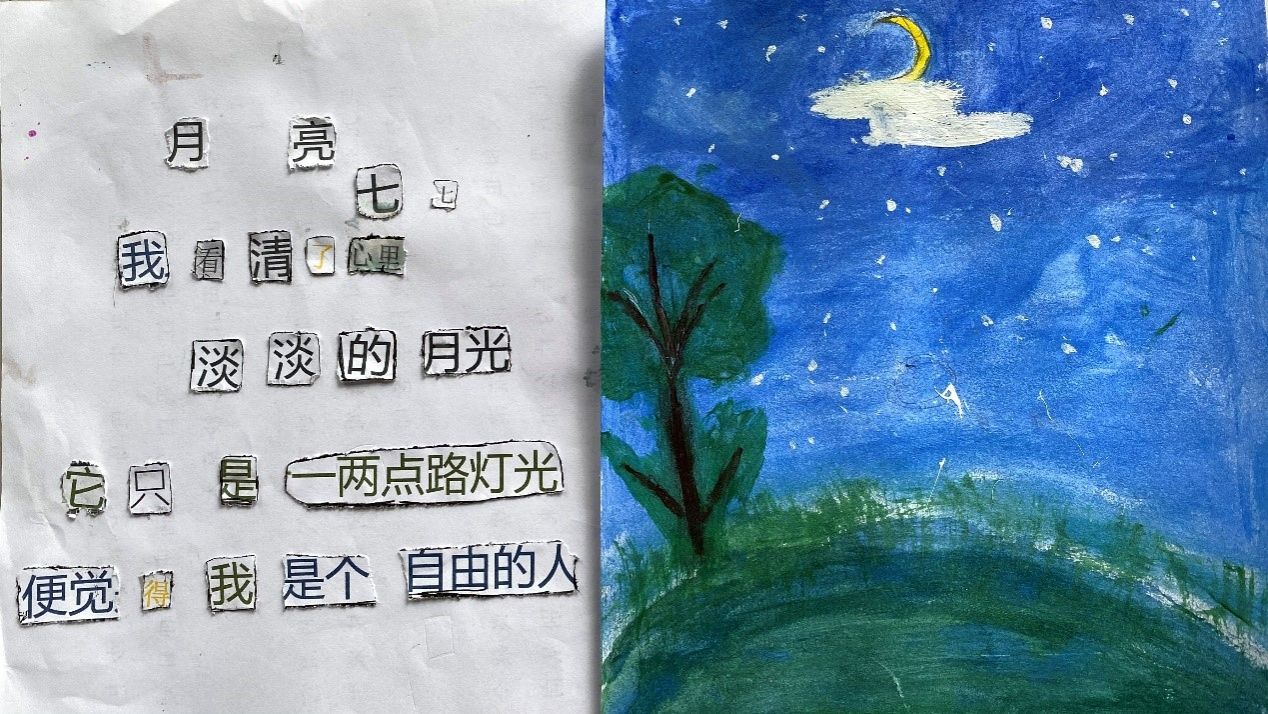 志愿者利用美术学科表现形式直观易懂的特点,将诗歌与美术教学融洽结合,不仅能让同学们在诗情画意中完成创作,培养同学们的创新思维,还让学生们受到文化的渗透和艺术的熏陶,达到了培养学生的认知和审美能力的目的。