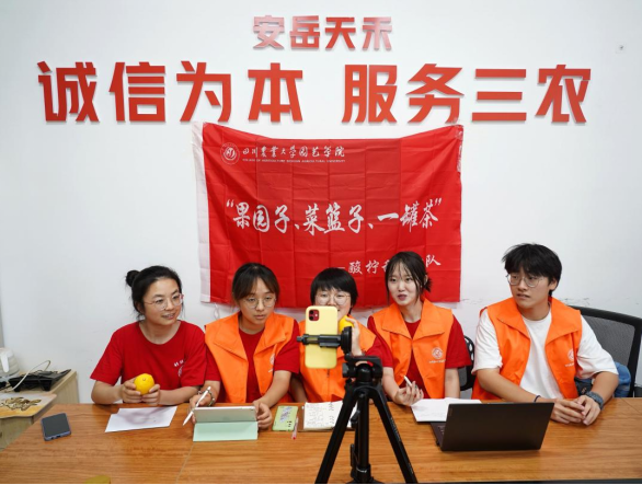 “我们的目标是完成5吨农产品销售!”在快手、抖音等直播平台,园艺学院的“果园子”“菜篮子”“茶罐子”产业增效实践团正协助当地村民开展直播带货。通过对安岳县、蒲江县、石棉县等地约600个调研样本全面分析,切实了解农民在水果生产中遇到的问题,精准对200户农民进行指导,助力地方经济发展。