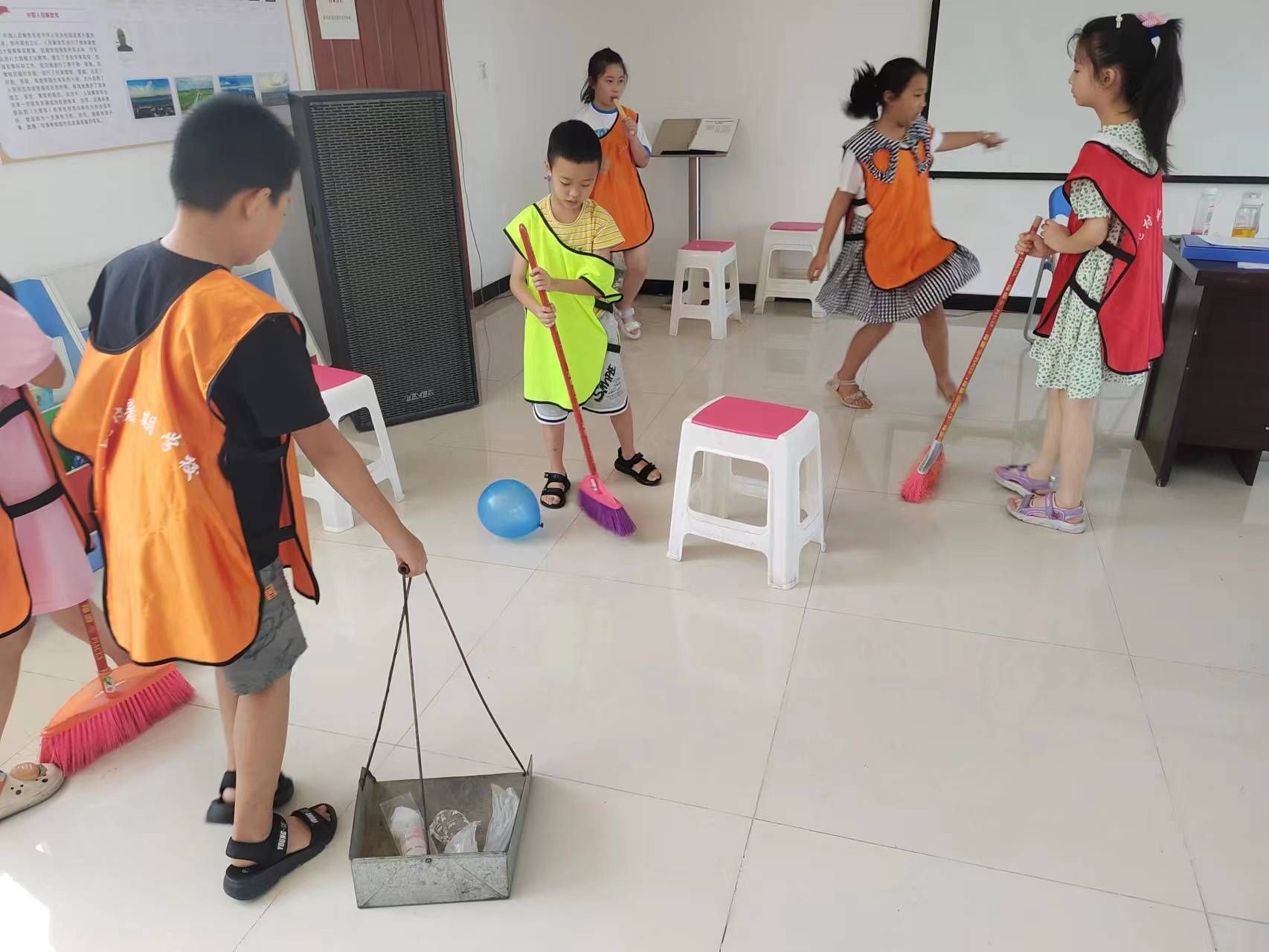 课后,团队老师及志愿者组织同学们开展了3个小游戏分别是投球接力、背对背运球与踩气球。每一个游戏大家都激情澎湃,遵守游戏规则,以计分形式来分出最终胜负,最终蓝队第一名,黄队第二名,红队第三名,游戏解结束后,老师们为大家分发了各自的奖品并安排了最后打扫卫生的同学,被安排到的同学将教室打扫得干干净净。