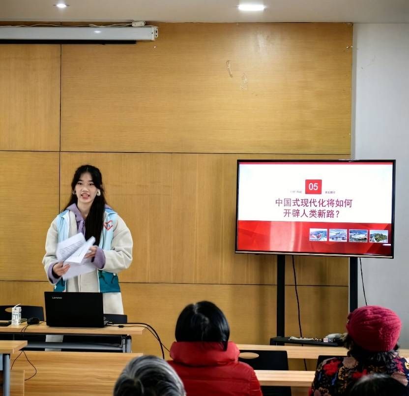 tyc5997太阳集团2022级学生谢灵玥为村民宣讲《深入理解中国式现代化