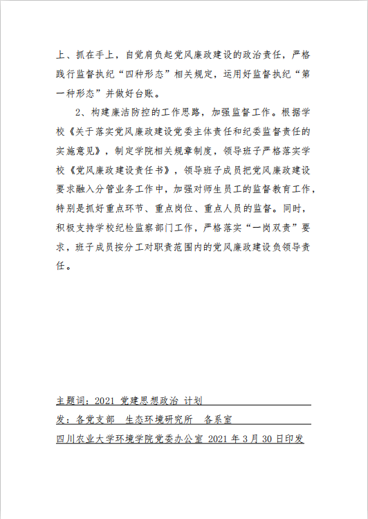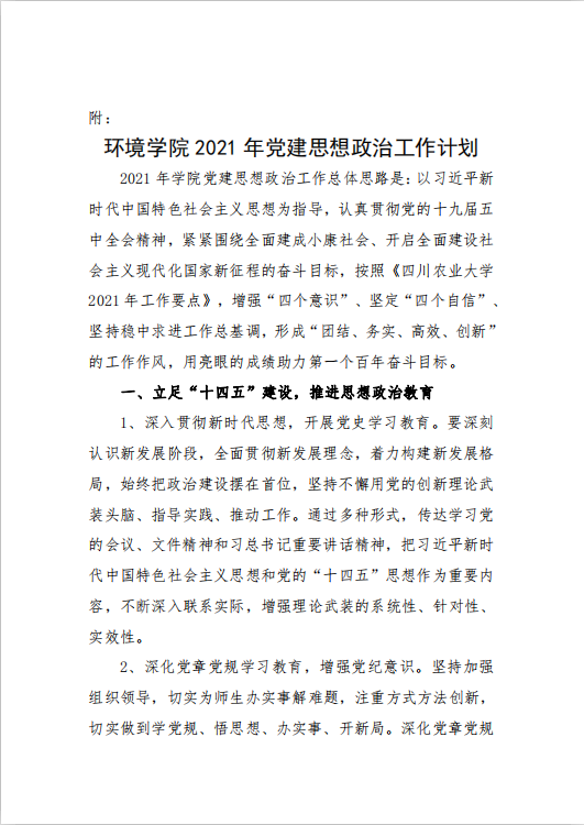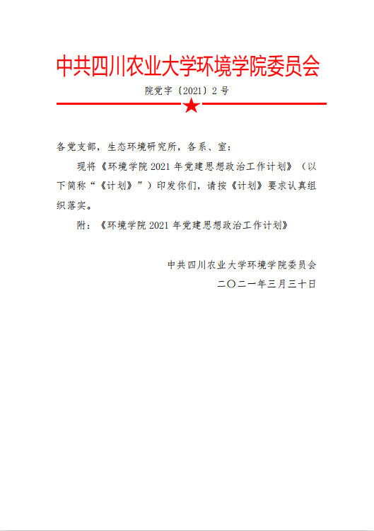 院党字【2021】2号:环境学院2021年党建思想政治工作计划