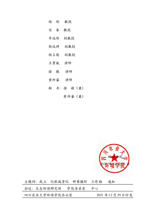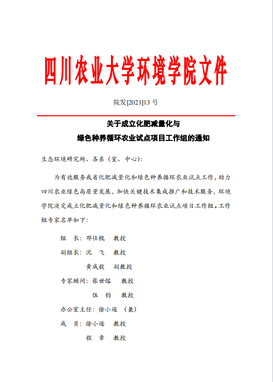 关于成立化肥减量化与绿色种养循环农业试点项目工作组的通知