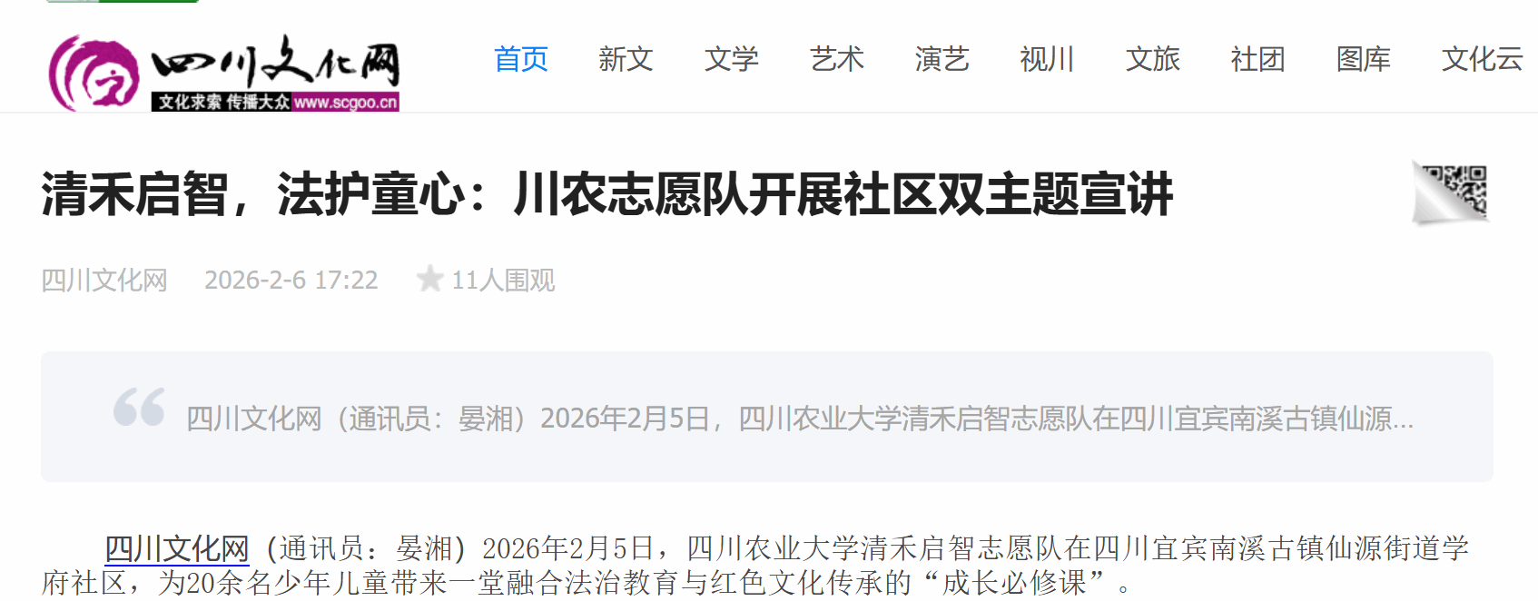 2026年2月5日,tyc5997太阳集团清禾启智志愿队在四川宜宾南溪古镇仙源街道学府社区,为20余名少年儿童带来一堂融合法治教育与红色文化传承的“成长必修课”。