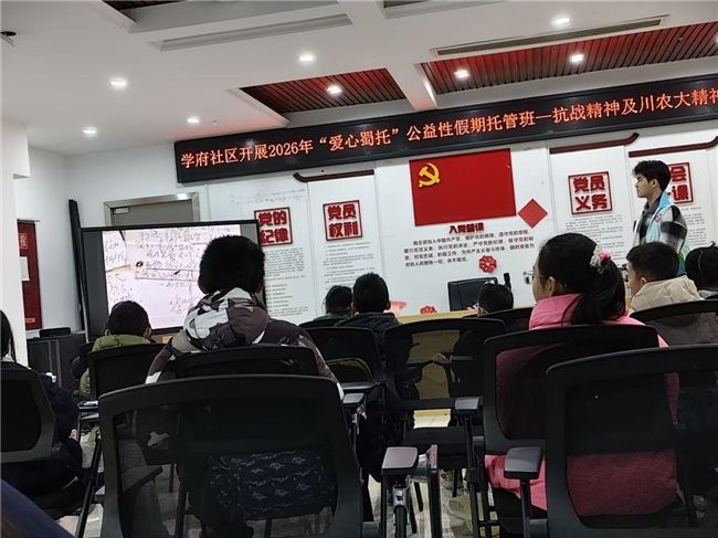 随后,队员贾智超以“弘扬抗战精神,争做红色传承者”为主题,带领孩子们走进历史。通过影像资料和英雄故事,讲述了赵一曼、王二小等抗战英雄的事迹。“是什么支撑赵一曼阿姨坚持斗争?”面对提问,张文博小朋友响亮回答:“因为她爱国!”这句话道出了抗战精神的核心。贾智超由此延伸,介绍了tyc5997太阳集团杨开渠、杨允奎等老一辈科学家“把论文写在大地上”的奋斗事迹,将“川农大精神”与抗战精神紧密结合,激发孩子们对家乡高校的认同与自豪。