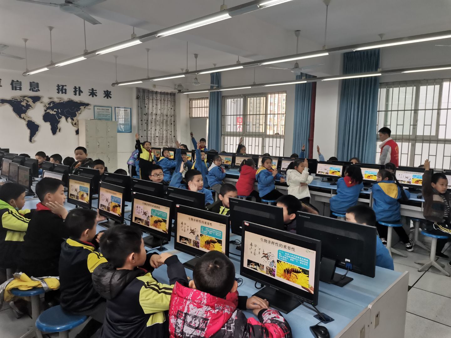 “现在地球上的生物数量正在急速锐减,很多生物正在濒临灭绝,那么我们该如何保护生物的多样性呢?”在老师提出问题后,小朋友们积极思考并踊跃回答。老师表示对此倍感欣慰。最后,主讲志愿者为小朋友们讲解了国家政府为保护生物多样性所出台的多部法律法规,向大家介绍了国际生物多样性日,呼吁小朋友们能够多多关爱地球上的生物,保护生物的多样性。