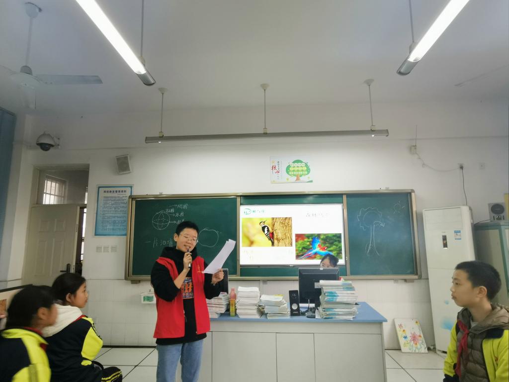 11月29日下午,2019年度环境学院团委青年志愿者工作部根与芽系列讲课活动第二期于成都师范学院附属实验学校开展。为宣传环保知识,开阔孩子们的视野,八名志愿者为四十几名孩子带来了环境知识拓展课堂。
