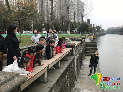 讲解结束后,李梦小朋友跑到河边的石栏杆下捡起了一个并不起眼的外卖盒,对着她的老师说“我们要保护河水,不能乱扔垃圾。”“虽然小朋友们对这些水质检测的专业操作不了解,但是这样的活动拓展了他们的视野,可以一点一滴地增强他们的意识,教育要从娃娃抓起。”幼儿园指导老师张成听到李梦的话之后对记者说,这同时也很符合该校对学生社会实践能力培养的要求。