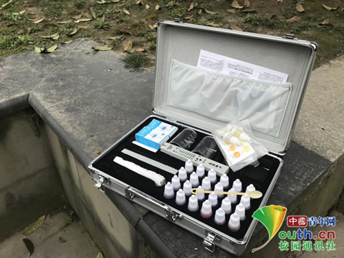 江安河旁,“你们平时吃东西的蘸料很多时候会加白醋吧,那就是一种酸,把这瓶蓝色的水放到里面,它就会变成黄色呢。”“硬水不是很硬的水哦。”志愿者们耐心地向小朋友们讲解日常生活中关于水的小知识。从溶液酸碱性、硬水软水的区别、重金属含量、矿物质含量等六个基本水质检测指标入手,联合生活实际,让小朋友们更容易产生兴趣。