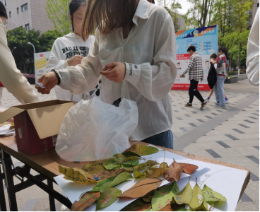 此次活动以落叶为材料,邀请同学们进行了创意签名的制作。活动准备期间,青工部志愿者收集并精心挑选了落叶,同时完成了有奖竞答的题目准备工作。活动正式开展时,参与同学通过简单的一支笔、一枚落叶完成了一份自己满意的落叶签名。如此简单却有意义的活动,吸引了许多同学的参与。同时,回答环保相关问题就可以抽取精品礼物的活动,也受到了广大川农学子的欢迎。