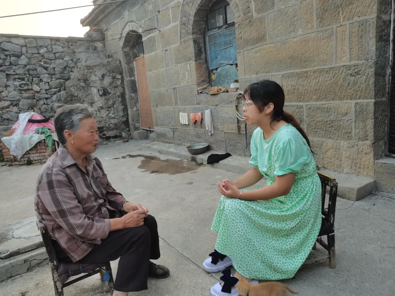 图为 葛梦瑶采访当地居民