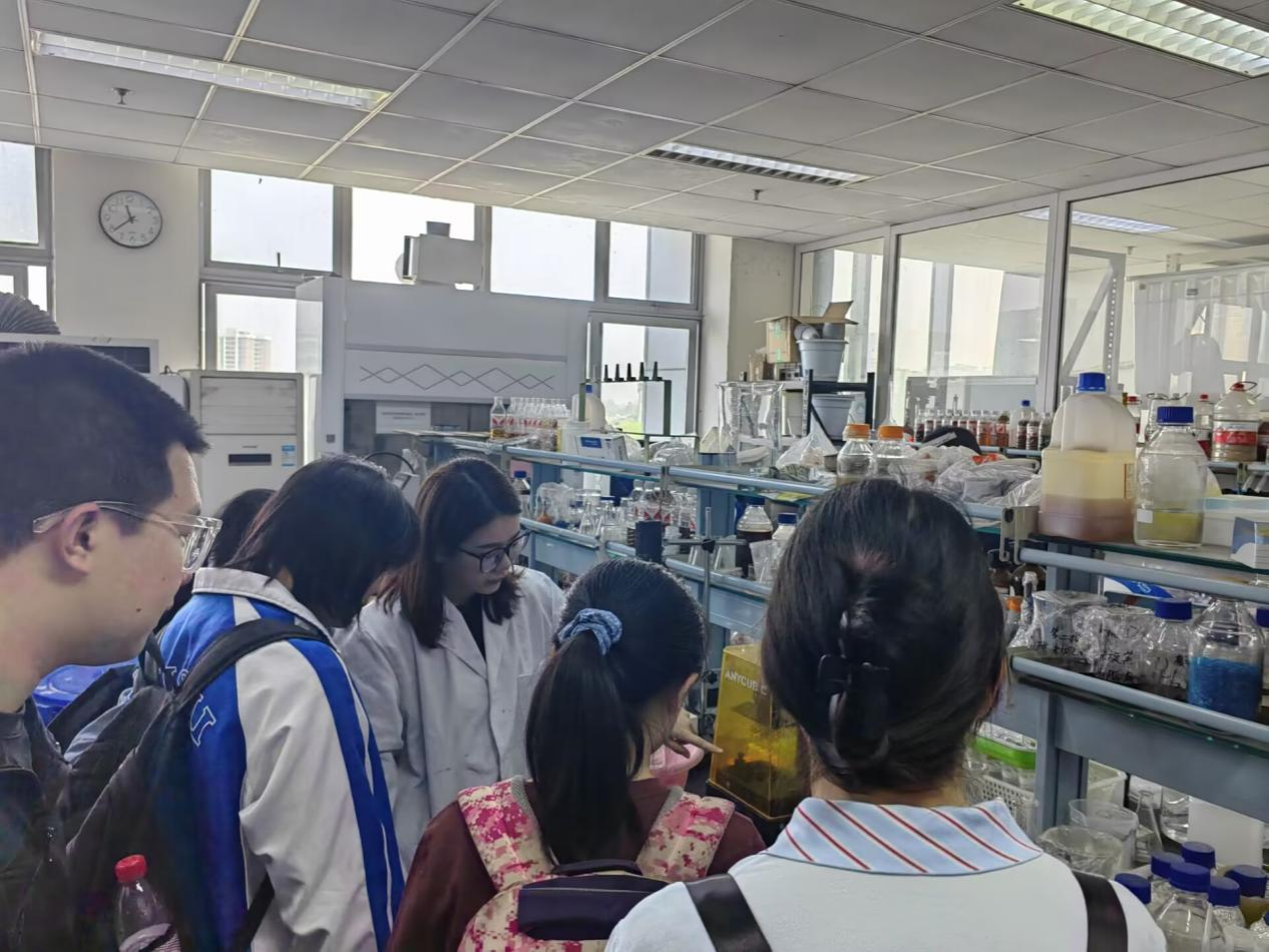 27日,在2023级研究生张宇的引领下,石室中学的同学们参观了农业废弃物资源化创新团队实验室。张宇逐一介绍了每件仪器的用途和工作原理,使同学们对环境科学实验有了更直观的认识。她还特别展示了3D打印技术在环保领域的应用成果,进一步拓宽了同学们的科技视野。随后,环境科学2021级学姐何林芝以生物膜为切入点,通过简易废水处理装置演示了废水处理的全过程,并详细阐述了废水处理的原理与流程。这让同学们对环保技术在日常生活中的实际应用有了更深入的了解。