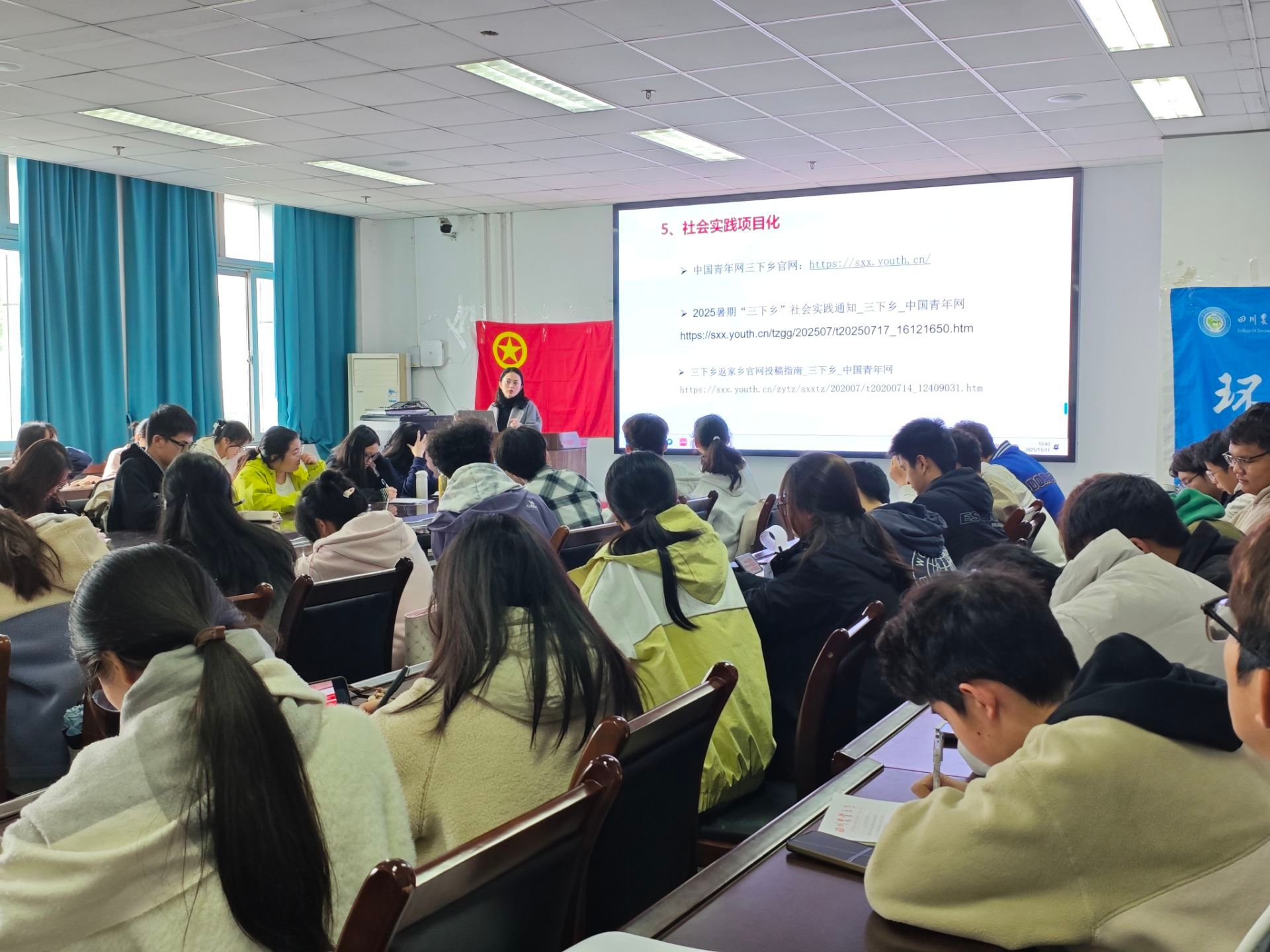 为进一步提升学生干部综合素质,强化团队协作与管理能力,环境学院于11月11日中午在3教423B召开第7期青马班第3次理论课。本次课程由环境学院专职辅导员谢丽苹老师为同学们开展“社会实践与志愿服务”专题培训。