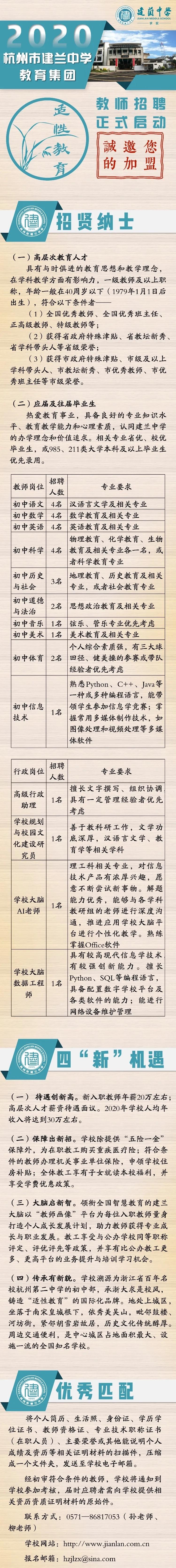 杭州市建兰中学教育集团招聘简章