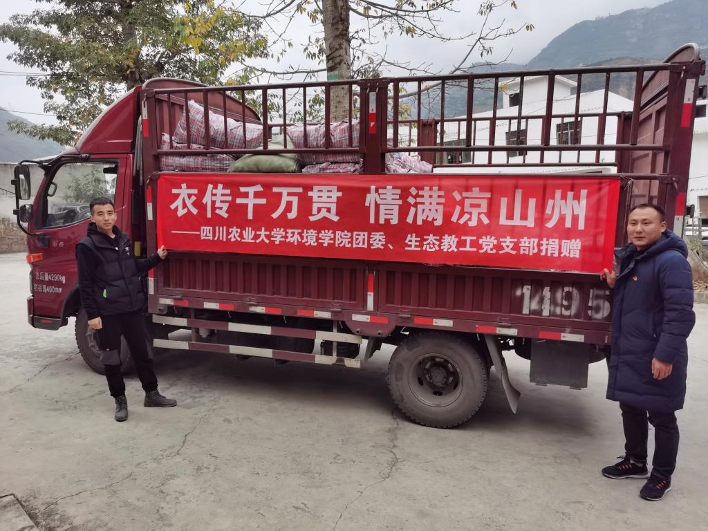 11月27日下午,教育部样板党支部——生态教工党支部向前、李志强两位博士党员,环境学院党委办公室教师及学生创业团队成员一行5人,历经七个小时前往雷波县千万贯乡开展生态修复及脐橙蜂蜜产品调研,并将学院组织捐赠的2943件衣物送到了当地村民手中。