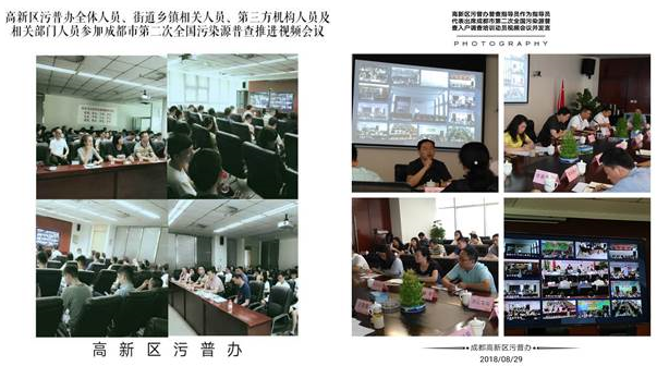 2018年8月29日上午,成都市召开第二次全国污染源普查入户调查培训动员视频会议,高新区环城局、污普办、各乡镇(街道)、第三方机构等相关人员齐聚高新区管委会659会议室参加本次视频会议。我区污普办普查指导员作为指导员代表出席会议主会场(成都市环保局A座527室)并发言。