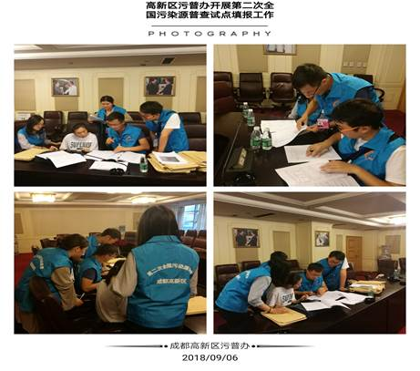 2018年9月3日-8日,学院高新区第二次全国污染源普查项目工作组积极组织、筹备,努力做好入户调查前期工作,组织普查员、普查指导员开展入户调查填报制度的学习工作;完成了自建库(餐饮、实验室、4s店)所需填报的表单制作;积极协助填写国、省、市重点监控企业-成都市第二次污染源普查培训(入户调查)回执表,并参与培训计划、制度的制定工作;积极编写入户调查工作详细方案,确保方案准确可行。