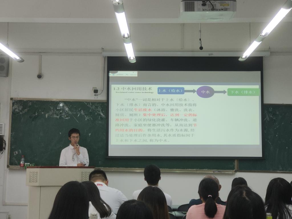 6月29日下午,由环境学院团委、环境生态工程系、环境工程系、学生会联合主办的第三届“环保设备设计大赛”在4B107教室举行。学院党委副书记黄成毅、大赛负责人张延宗、环境工程系主任肖鸿、环境生态工程系主任王莉淋、院团委书记李晓辉和天源水务有限公司张总经理参加了此次活动。王莉淋老师致开场词。
