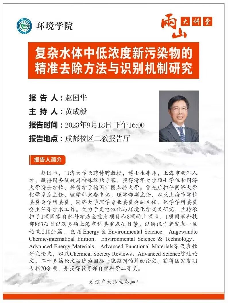 两山大讲堂——复杂水体中低浓度新污染物的精准去除方法与识别机制研究