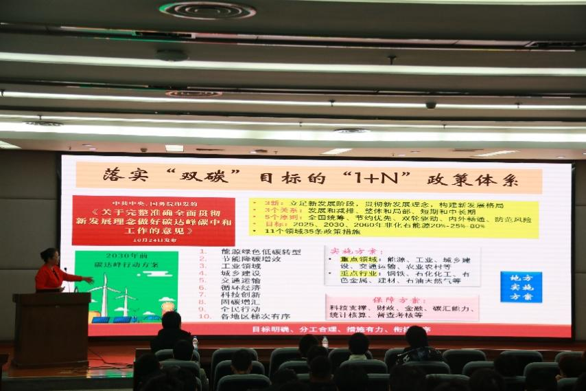 讲座中,陈迎教授以全球气候变化热点入题,深入浅出地讲解了全球二氧化碳的排放现状、实现碳达峰、碳中和途径、我国结构能源中煤炭的占比偏重等问题,为现场师生呈现了一场精彩的学术报告。在提问环节,陈迎教授与现场师生进行了深入的探讨交流。