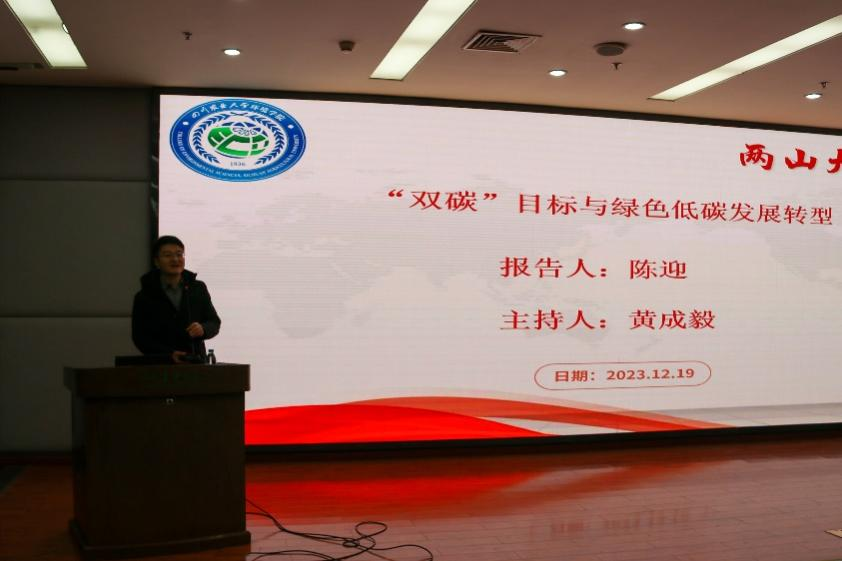 12月19日,中国社科院生态文明研究所二级研究员,中国社会科学院可持续发展研究中心副主任陈迎教授受邀做题为《“双碳”目标与绿色低碳发展转型》的专题学术报告。报告会由环境学院党委书记黄成毅主持,环境学院专业教师、研究生、本科生近200人聆听了讲座。