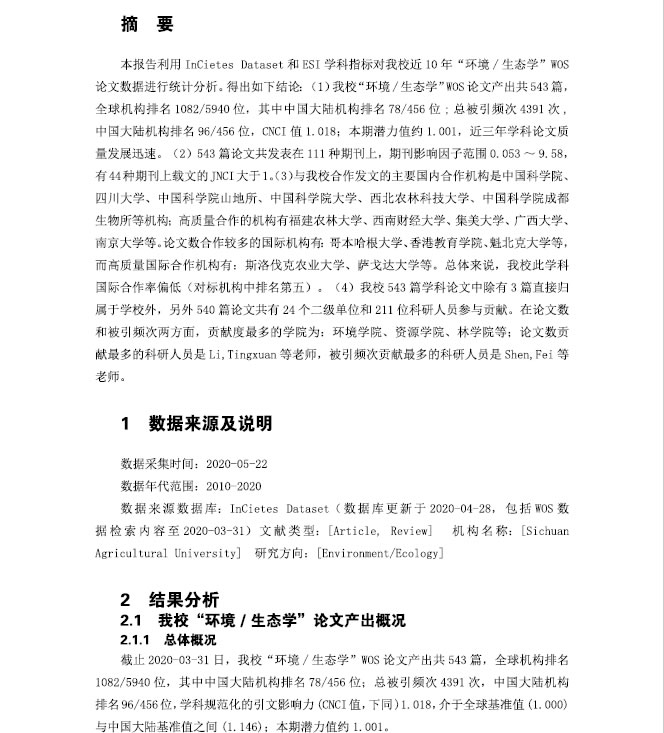 原文链接:基于WOS数据的“环境/生态学"学科分析报告——(2010-2020)