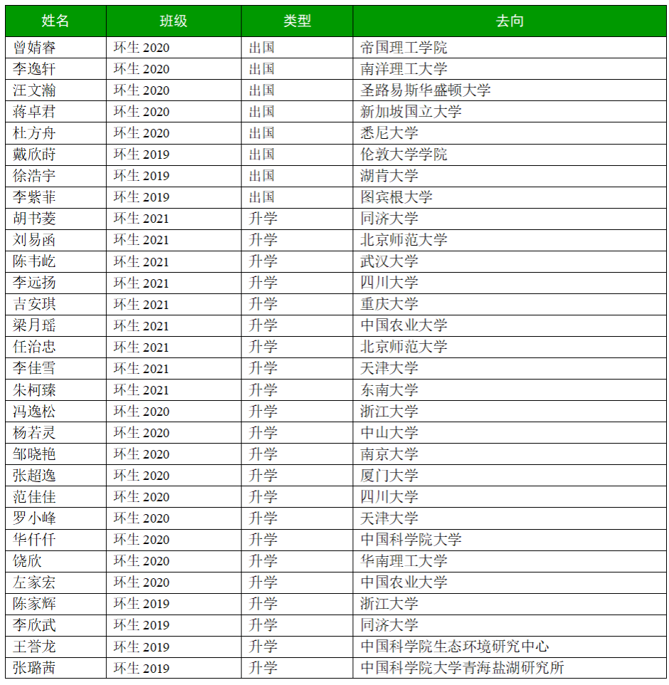 9.近年毕业生去向(部分)