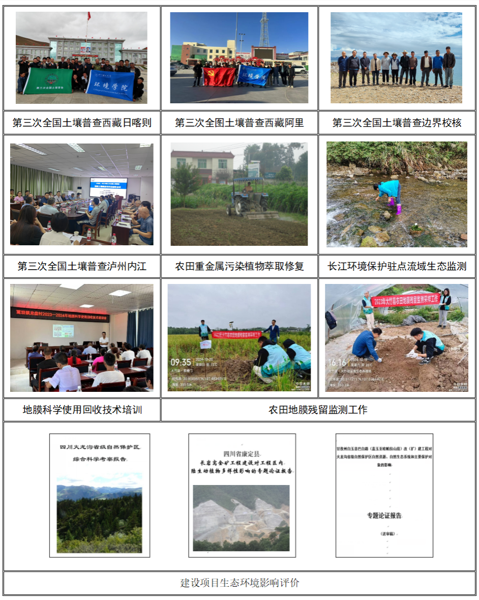 完成第三次全国土壤普查、环境影响评价、生态评估、生态红线、工程监理、环境规划、水土保持等咨询项目100余项,推广应用土壤污染修复技术多种,设计完成土壤污染修复工程项目10余项。