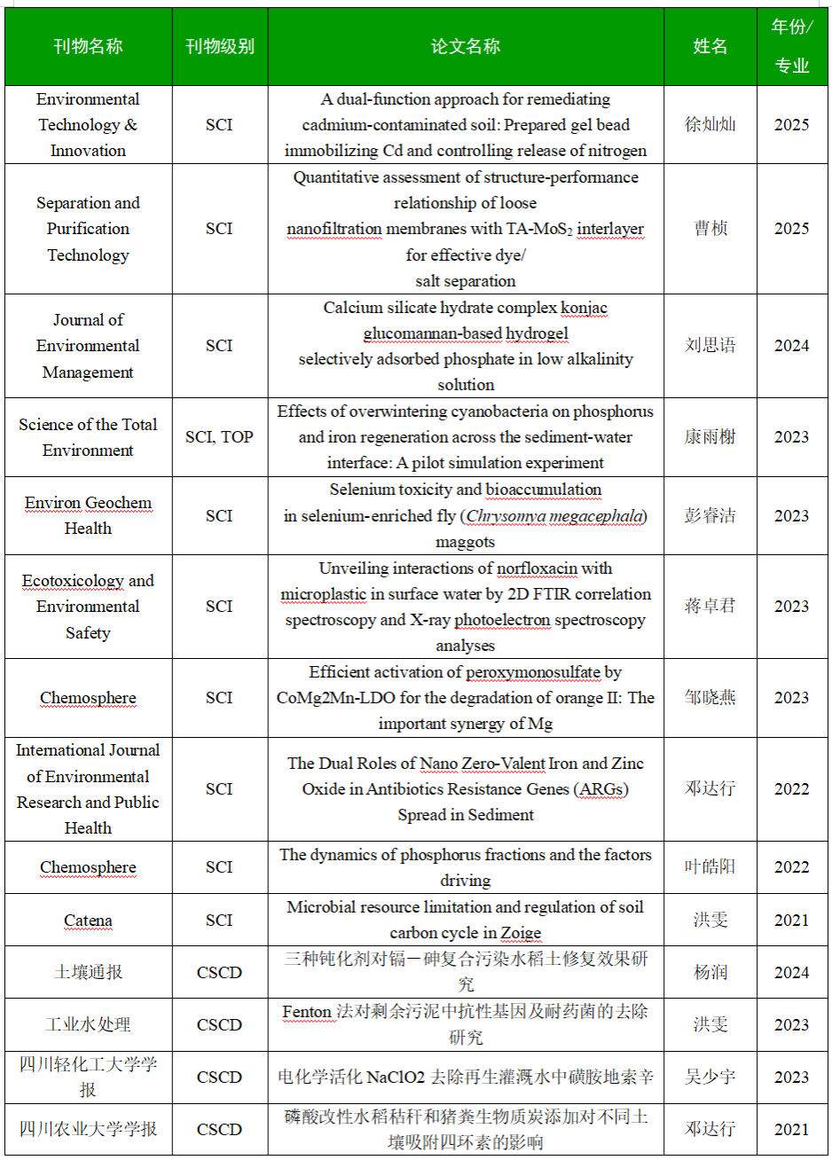 负责环境生态工程和生态学2个本科专业的建设、教学运行管理及育人成效评价;负责土壤污染过程与效应;土壤修复功能材料创制;土壤污染控制与修复3个学科方向的建设,负责四川省土壤环境保护重点实验室的管理与建设。